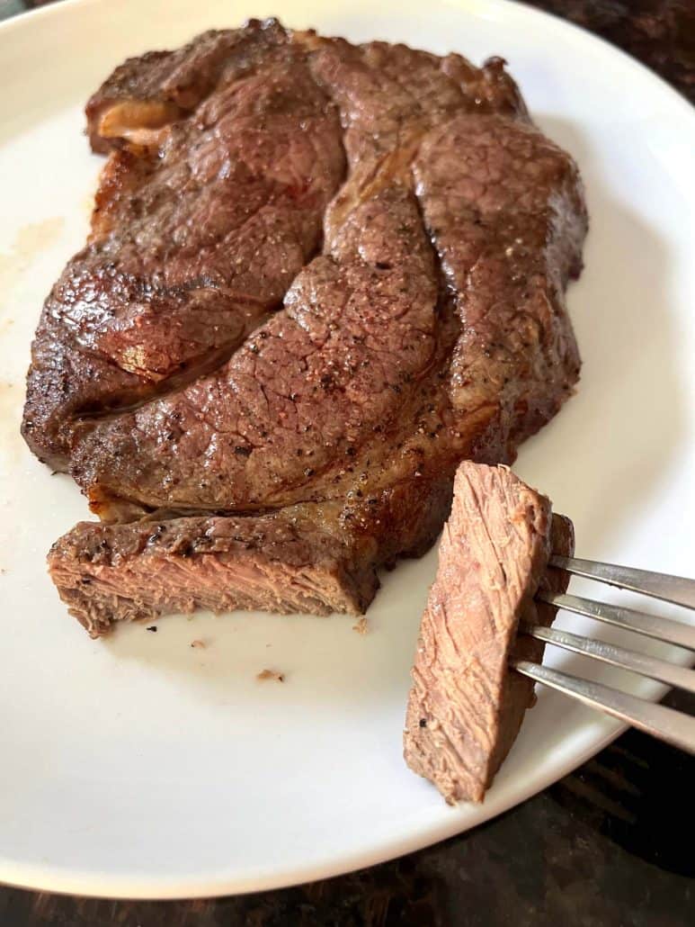 New York Strip Steak: Savor the flavors of a tender New York strip steak, seared beautifully in the air fryer.