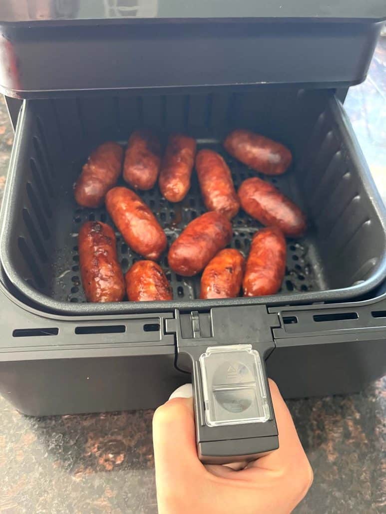 - Arrange in Air Fryer: Place the sausages in a single layer in the air fryer basket, ensuring they are not overlapping.