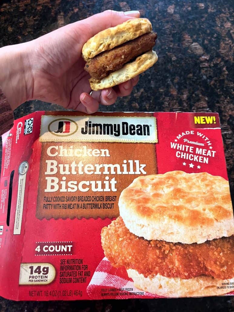 - Frozen Jimmy Dean Chicken Buttermilk Biscuit Sandwich – A delicious pre-made sandwich with a crispy breaded chicken patty and a flaky buttermilk biscuit. No need to thaw!