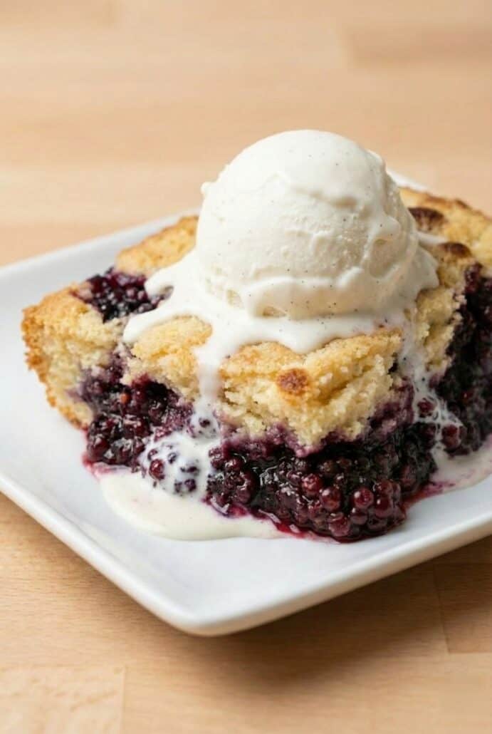 This Blackberry Cobbler is bursting with juicy fresh blackberries and topped with a soft, fluffy vanilla cake-like crust. The sweet berries bubble up around the golden topping, creating the perfect balance of fruity and buttery flavors. Serve it warm with a scoop of vanilla ice cream or a dollop of whipped cream for an easy, crowd-pleasing dessert.