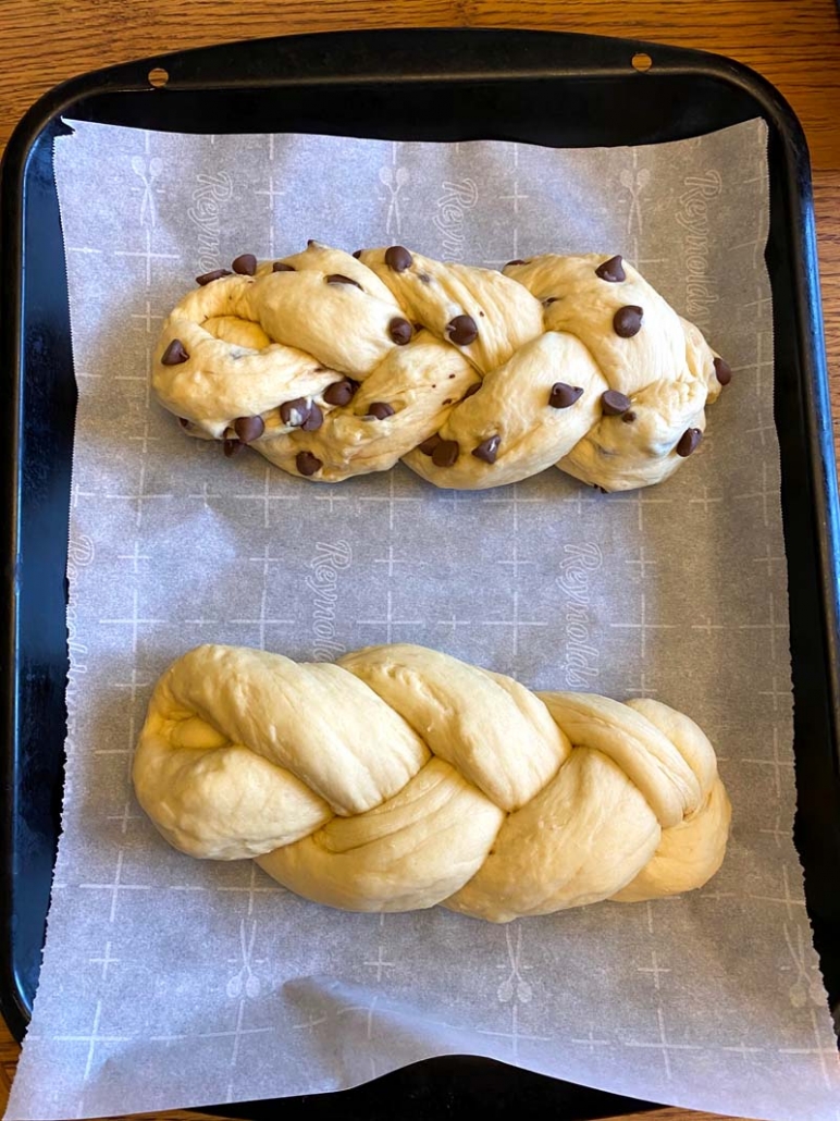 While I love challah bread just the way it is, I sometimes like to change it up and add a few more ingredients to the dough. Since this recipe makes 2 loaves, I will take one of them and add a couple of chocolate chips over the top as a treat for my family.