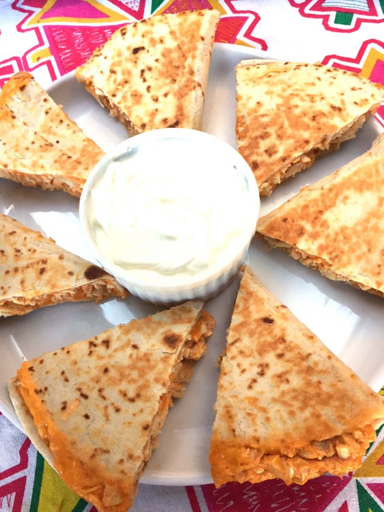 These Buffalo chicken quesadillas are absolutely amazing! So spicy and cheesy, they can be on your table in just 10 minutes!