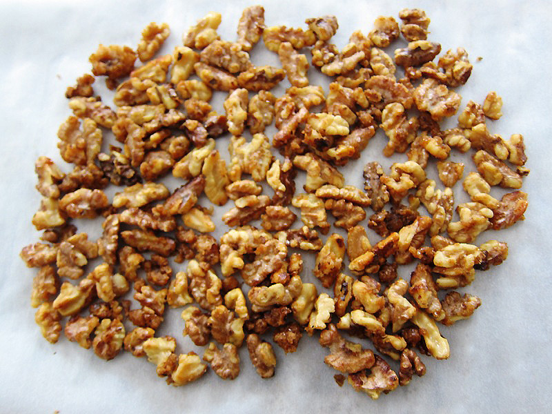 Here’s the picture of cooked candied walnuts cooling on a baking sheet: