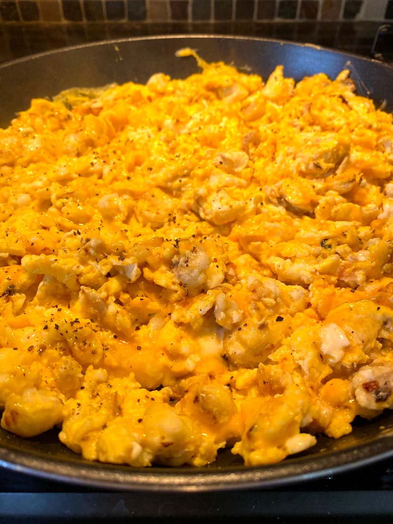 Classic scrambled eggs just got a makeover in the form of this delicious and easy cauliflower scrambled eggs recipe. Made with three simple ingredients, it’s cheesy and loaded with flavor.