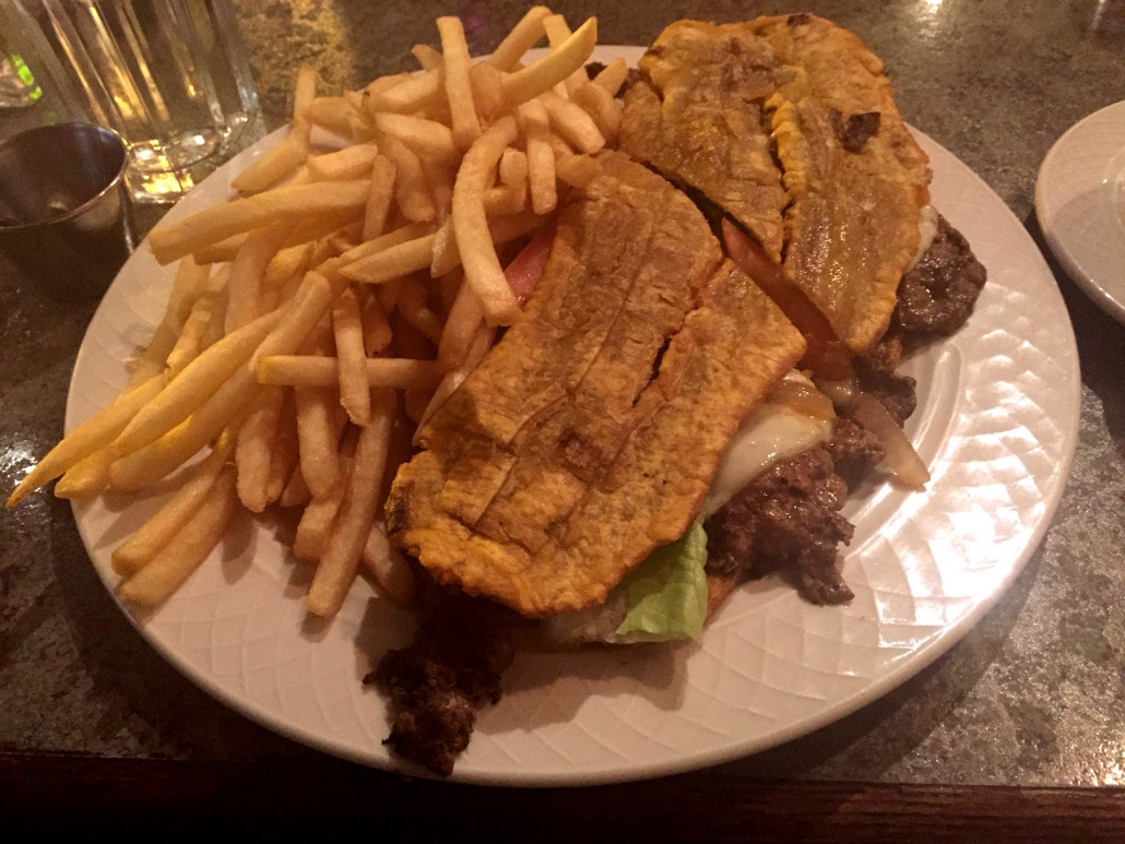 For the plantain sandwich, you can choose the type of meat – chicken, steak or pulled pork. My sandwich had steak with Swiss cheese, grilled onions, lettuce and tomato. This sandwich was outstanding! The fried plantain was so delicious – it complements the meat perfectly. I don’t know of any other place that has this type of plantain sandwich, so I’ll have to order it again when I come back to get my plantain fix!