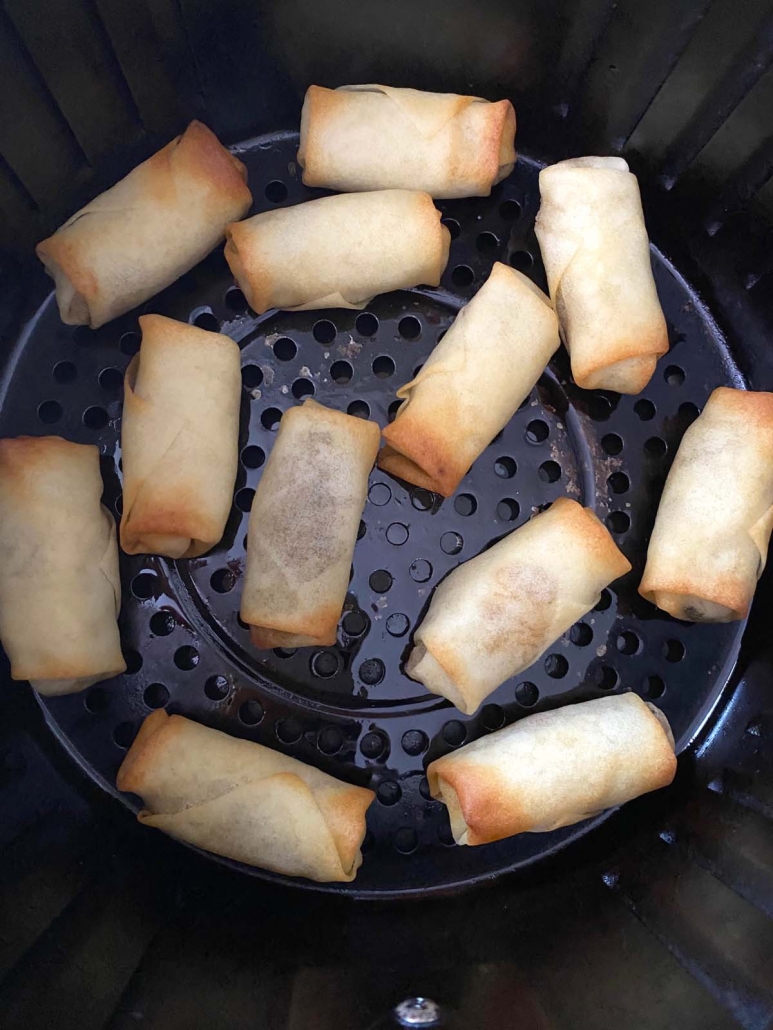 I was able to fit a whole package of 12 spring rolls in my air fryer.