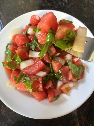 And finally, here’s a picture of watermelon chunks in a bigger bowl – a yummy watermelon feast! Imagine biting into a cold juicy sweet watermelon – yum!