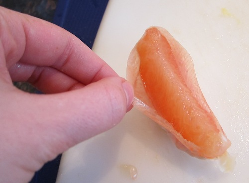 - Repeat peeling the remaining grapefruit segments. Now you have extremely tasty grapefruit segments without that annoying chewy skin!