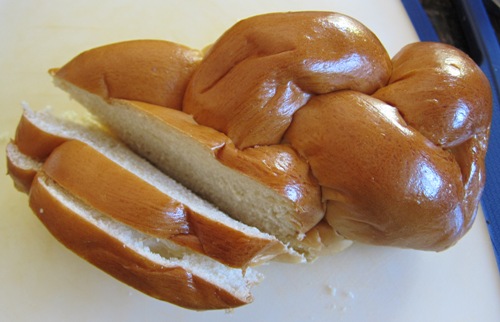 After that, just keep slicing the challah. Those challah slices are nicely shaped and make super-yummy sandwiches!