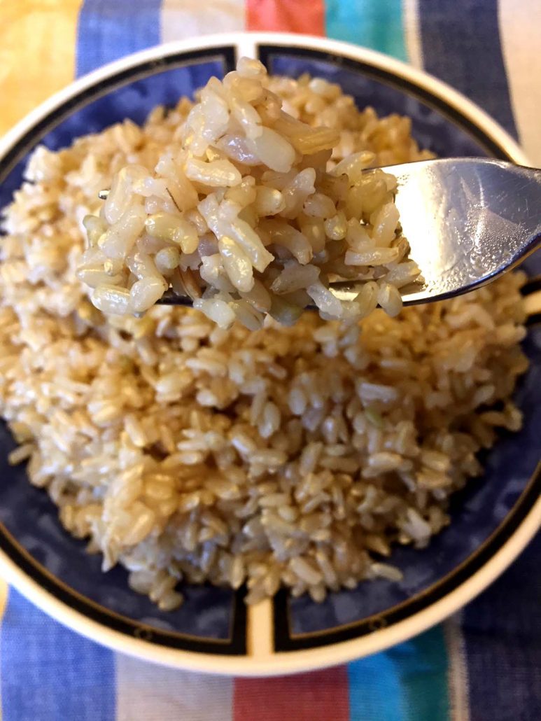 - Open the lid of the Instant Pot and fluff the brown rice with a fork.