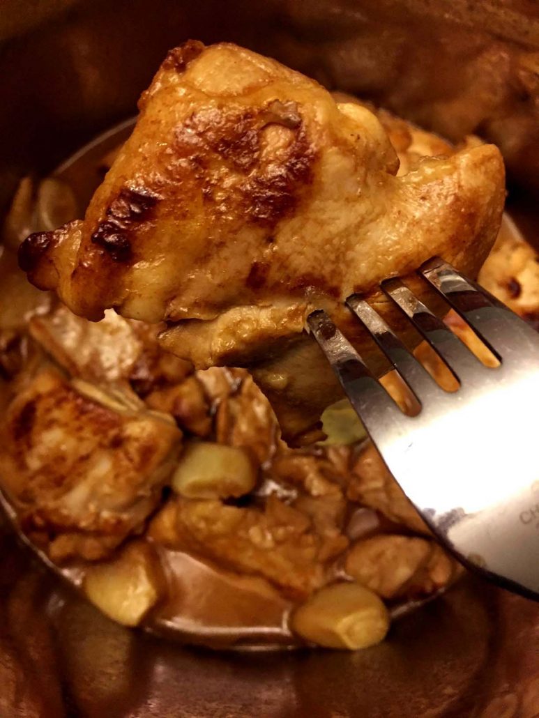 - Put the Instant Pot on a Saute setting. Add the oil in the Instant Pot. Take the chicken pieces out of the sauce and saute right in the Instant Pot in batches until the chicken is just browned (2 minutes per side).