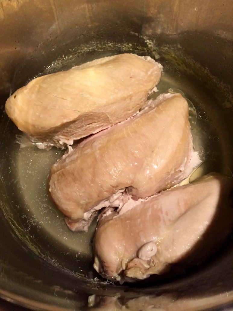 - Put water and chicken breasts or thighs in the Instant Pot.