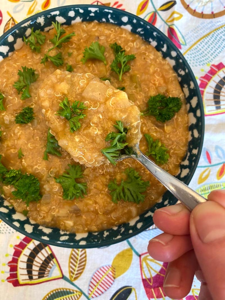 One bite of this Instant Pot lentil quinoa soup and you’ll agree – it is wonderful! This soup is so full of flavor.
