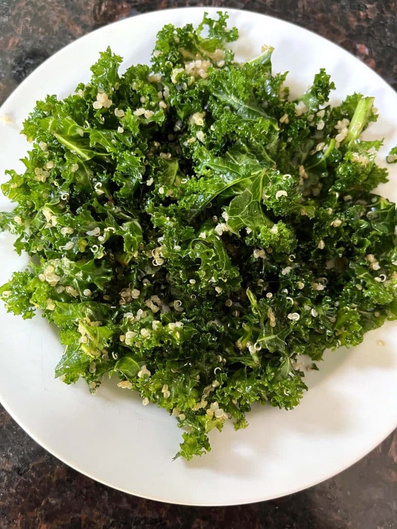 - Add Quinoa and Raisins: Mix in the cooked quinoa and raisins to the massaged kale.