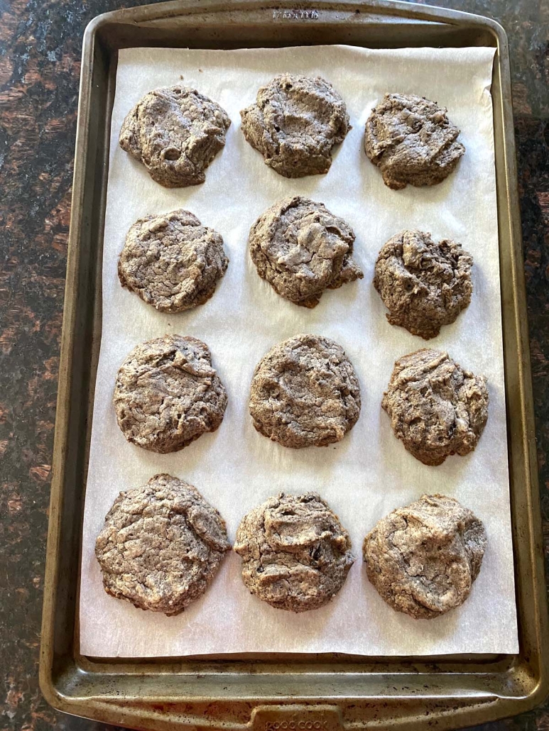 Drop cookie dough onto parchment paper-lined baking sheet. As needed, use fingers to shape dough into circles. This recipe makes about 12 cookies.