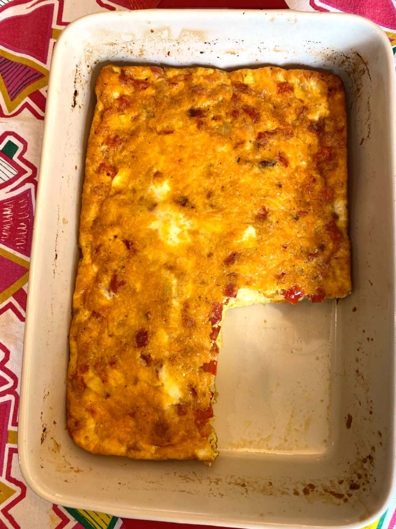Look at this glorious oven frittata! Baked in a baking dish, perfectly puffy and golden-brown, with extra cheese on top, it just wants to be eaten!
