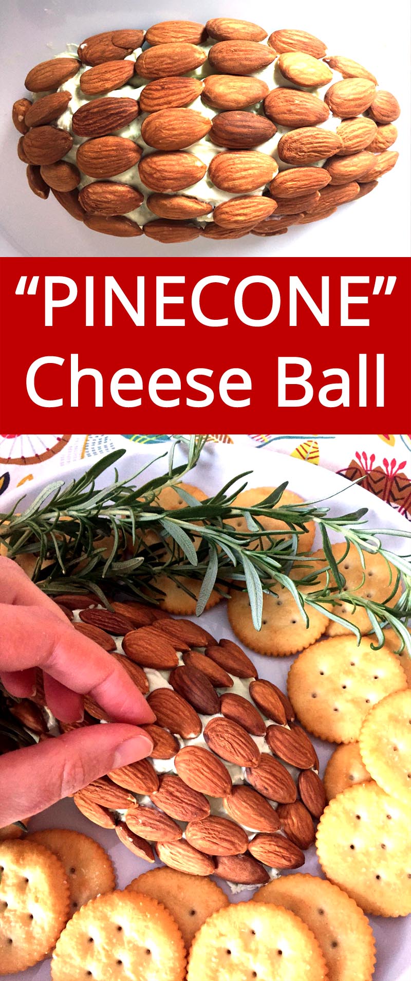 When I think about the cheese ball appetizer, my hand is looking for an imaginary cracker to help me dig in. And when it’s no ordinary cheese ball, but a pinecone shaped one, I’m unstoppable!